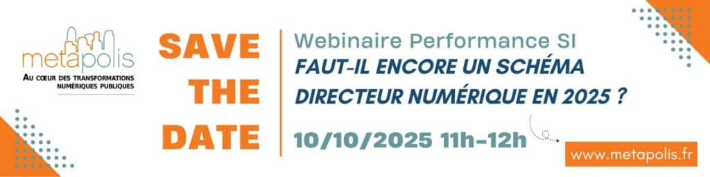 📅 Rendez-vous le 10 octobre de 11h à 12h pour une heure d’échange animée par David Huin, directeur de projet et Marion Pinceloup,consultante senior, avec la participation de Benjamin Mathieu, DSI du Conseil Départemental des Alpes-Maritimes, et de Thierry Manzano, DSI d’Orléans Métropole.